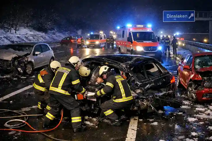 Schwerer Unfall auf der A3 bei Dinslaken: 12 Verletzte, eine eingeklemmte Person gerettet