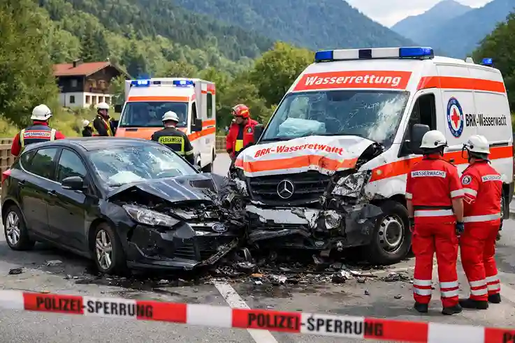 Schwerer Unfall in Bischofswiesen: Ford kollidiert mit Wasserrettungsfahrzeug