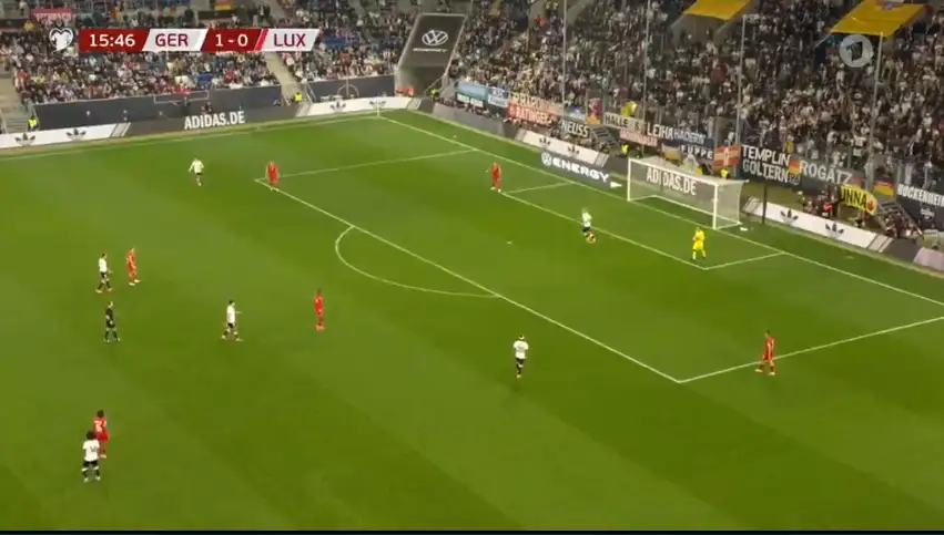 Nach der Halbzeitpause setzte Deutschland seine Dominanz fort. Serge Gnabry erzielte in der 48. Minute das 3:0, bevor Joshua Kimmich in der 51. Minute das 4:0 markierte. Luxemburg konnte kaum Chancen kreieren, während Deutschland das Spieltempo kontrollierte und zahlreiche Torschüsse setzte.