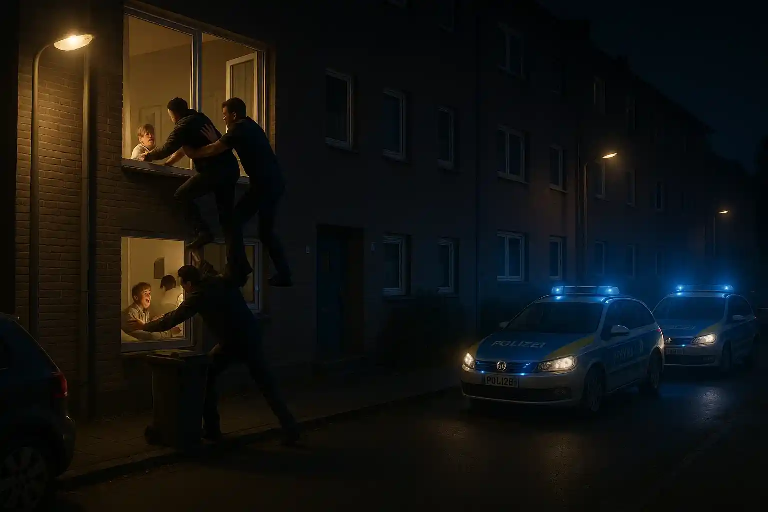 Während der mutmaßliche Einbrecher versuchte, mithilfe einer Mülltonne durch das Fenster zu klettern, bemerkte der neunjährige Sohn der Familie den Eindringling. Mit einem lauten Schrei alarmierte er seine Familie – so laut, dass der Täter vor Schreck von der Mülltonne fiel. Der 18-jährige Bruder und der 37 Jahre alte Vater eilten sofort herbei und konnten den Mann festhalten, bis die herbeigerufene Polizei eintraf.