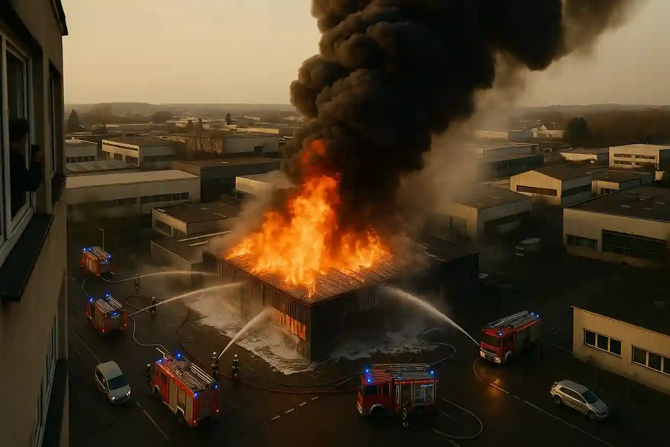 Bielefeld – Am Samstagnachmittag (29. November 2025) gegen 15:50 Uhr ist in einem metallverarbeitenden Betrieb im Stadtteil Altenhagen ein Großbrand ausgebrochen. Eine etwa 400 Quadratmeter große Lagerhalle steht in Vollbrand, meterhohe Flammen und eine kilometerweit sichtbare schwarze Rauchsäule sind die Folge.