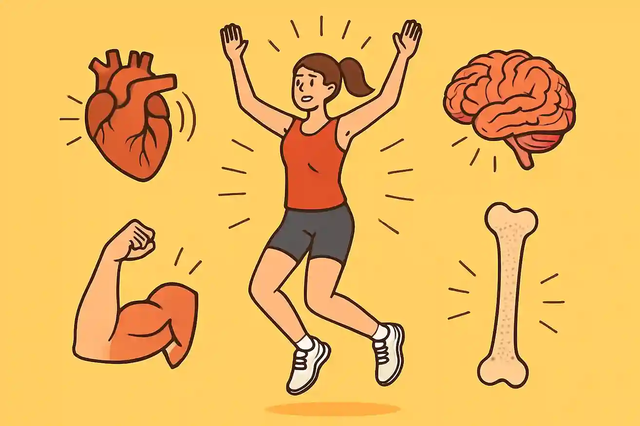 Studien zeigen, dass anaerobe Übungen wie Springen nicht nur Kalorien verbrennen, sondern auch die Herz-Kreislauf-Gesundheit verbessern, den Muskeltonus erhöhen und die Knochendichte stärken. Eine Studie aus Sports Health Journal belegt, dass kurze, hochintensive Sprünge ähnliche Effekte auf Herz und Kreislauf haben wie längere Ausdauereinheiten.