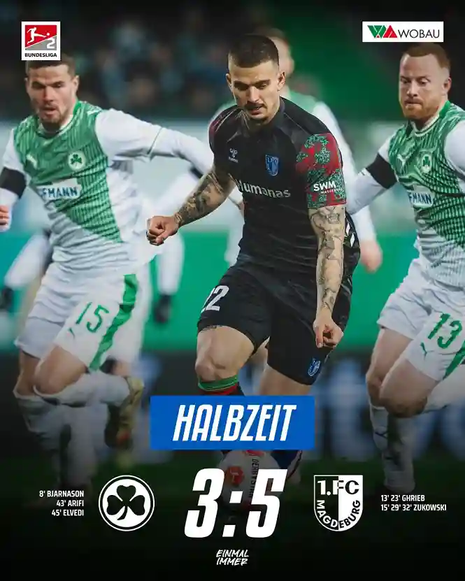 Spektakel in der 2. Bundesliga: Magdeburg siegt 5:4 in Fürth