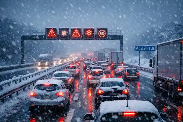 Die winterlichen Bedingungen führen zu erheblichen Einschränkungen im Verkehr. Besonders auf Autobahnen kommt es immer wieder zu Staus, da Schneeverwehungen, Glätte und eingeschränkte Sicht das Fahren erschweren.
